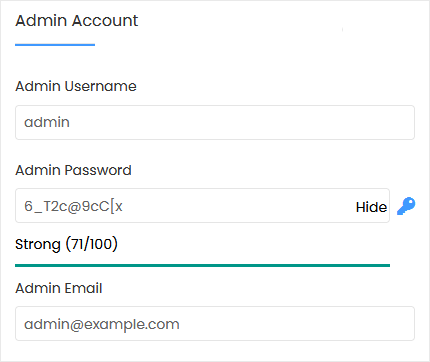 - Admin Password: Use a strong password.