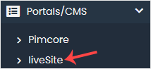 4. On the left side, locate the Portal/CMS category. Click on it and then on the liveSite link that appears.