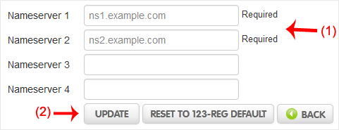 If your domain is registered on 123-Reg, you should follow this tutorial to update your domain's Nameservers.